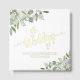 This beautiful wedding guest book features a rustic boho chic design with hand painted watercolor sprigs of eucalyptus leaves and garden greenery in shades of mint, moss, and sage green. Printed with real foil, the book features elegant script calligraphy reading "the wedding of" with your names and wedding date. This lovely book will serve as a beautiful memento of your special day that you can cherish for years to come.
