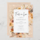 Introducing our rustic boho "fall in love" bridal shower invitation —where timeless elegance meets the warmth of fall's enchanting palette. Picture this: a distressed soft peach background sets the stage for an invitation like no other. A white text box stands out, surrounded by a breathtaking bouquet of fall-coloured watercolor flowers in rich rust, warm peach, creamy beige, and earthy brown, with subtle touches of grey adding a touch of sophistication. This invitation is more than just an announcement; it's a work of art that reflects the romance and charm of your special day. Created by Simply Farmhouse Press.