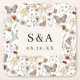 Rustic Boho Floral Wedding Square Paper Coaster. Add a refined detail to your table or drink station with our Monogrammed Coaster, designed with a deep black background and personalised ivory lettering. A soft botanical or butterfly motif in muted neutrals—think dusty rose, taupe, and cream—brings an artistic, romantic feel to this functional piece. Whether used during the reception or gifted as a keepsake, this coaster ties seamlessly into your moody wedding theme. Customise it with your initials or wedding date for a beautifully branded touch guests will admire and remember.
