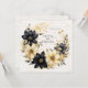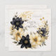 An earthy rustic boho wedding invitation, with a creamy white and black floral wreath on a light wood grain background, as the main feature of this design, with all the details on the back.
