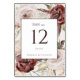 Elements: elegant watercolor roses and greenery around a delicate frame. Your names and information appear in modern serif fonts. Colours: burgundy, marsala, cream, green, brown. Themes: boho, bohemian, rustic, fall, autumn, winter, earth tones, neutrals, vintage. Collection: Rustic Boho Marsala Cream Floral Wedding Collection. Product Type: Table Card