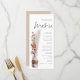 Rustic Boho Pampas Grasses Wedding Menu. Fall coloured grasses in a rustic style vase decorate the bottom left corner, with an elegant script for Menu and easy to personalise the rest of the text to your requirements.