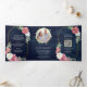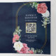 Rustic Boho Pink Roses Floral Navy QR Code Wedding Tri-Fold Invitation