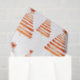 A fanciful pattern features rustic red Christmas trees made from cinnamon sticks and topped with a poinsettia. White background keeps it bright and airy.