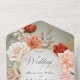 AVAILABLE WITH OR WITHOUT A QR CODE OR DINNER SELECTION OPTIONS. This wedding invitation features a delightful sage green background that sets a calming and elegant tone. A delicate white blur overlay adds a touch of softness, lending an ethereal quality to the design. Surrounding the invitation's central content is a charming boho fall floral frame composed of warm hues. Rust, burgundy, blush peach, and pink blossoms intertwine with soft greenery, creating a romantic and whimsical ambiance. This combination of colours and floral accents exudes a sense of natural beauty and adds a dash of enchantment to the invitation, making it a captivating choice for a fall wedding celebration. Created by Simply Farmhouse Press.