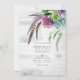 Trendy succulent plant wedding photo invitation with bohemian feathers and elegant calligraphy customisable to your event specifics. Ideal for any given theme or garden wedding. The QR code on the reverse directs to your wedding site where people can learn more and rsvp.