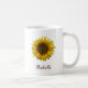 Boho botanical Yellow Sunflower bloom coffee mug, with customizable script typography. Enjoy this personalized accessory item for everyday use or as a gift for someone special.
