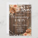 Celebrate a new chapter with this warm and charming rustic housewarming party invitation. The design features rich earth-toned florals — burnt orange, terracotta, and blush blooms — cascading over a weathered dark wood plank background, accented by delicate string lights that add a cozy, romantic glow. The elegant script and bold typography give it a classic yet bohemian feel, perfect for a fall or autumn gathering. Fully customizable with your own names, date, time, address, and RSVP details. A beautiful keepsake-worthy invite your guests will love receiving.