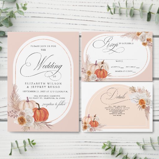 Rustic Boho Pampas Pumpkins Fall Wedding SetDesigned by Maria G
