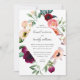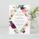 With rustic boho styling, this luscious floral wedding invitation features a rhombus diamond-shaped frame surrounded by colourful watercolor peonies, roses, anemones, wildflowers and mixed greenery. The stylish colour palette includes rich hues of pink, burgundy red, peach, off-white, green and teal. The type face pairings used in the text template convey your wedding details in modern style with the bride and groom's names in lower case text. The colour scheme used in this invitation is a wonderful choice for weddings in any season of the year. Personalise the text with your wedding details.