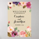This simple & elegant wedding welcome sign is framed by beautiful watercolor flowers & foliage. Modern calligraphy and typography add a stylish trendy touch to this classic design by Kitty Pie Prints. Background colour is changeable! Just hit the "customise" button to choose your preferred background colour.