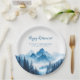 Rustic Boho Watercolor Mountains Retirement Party Paper Plate