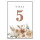 Capture the spirit of your special day with these beautiful boho-style table number cards. They feature a stunning earth-tone floral design, making them the perfect addition to any wedding table. Matching items in our store Cava Party Design.