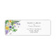 This is a rustic wildflower and greenery themed address label. design features a variety of spring wildflowers including yellow daffodils, purple pansies, dandelions, fern and ivy greenery. It also includes ladybirds and a sweet dragonfly.