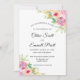 Colourful wildflowers decorate this rustic Boho Chic wedding invitation. Yellow, pink and purple flowers are nestled in leaves and foliage.