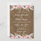 Rustic boho wedding invitation with blush pink watercolor flowers, on wooden background. The default size of the card is 5 x 7 inches, you can change it to any size.