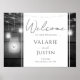 Rustic Boho Wood with Jar Lights Wedding Welcome Sign. Script font highlights with easy to read serif name font. Easy to adjust for your own wedding needs. Welcome sign for ceremonies, dinner parties, or other wedding events. Need to change all the text for another event? This easy to use template can be adjusted for any of your party needs. Just delete and add your own text.