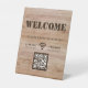 Rustic Bold Wood Grain Welcome WIFI QR Code Pedestal Sign