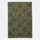 Rustic botanical face line pattern kitchen towel featuring abstract facial outlines blended with delicate leaves and floral accents on a warm brown background. Vintage-inspired and minimalist, this elegant design has a natural earthy aesthetic ideal for rustic decor lovers, boho style fans, botanical enthusiasts, and modern farmhouse admirers.