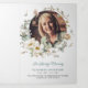 This elegant funeral program features a rustic botanical design that brings a serene and peaceful ambiance, ideal for commemorating a loved one's life. The cover features a touching photo framed by hand drawn delicate eucalyptus leaves and cotton flowers, which add a natural and calming touch to the overall layout. The interior pages provide ample space for an obituary, order of service, poem or prayer, acknowledgements, or any other text, with a coordinating botanical border along the bottom that enhance the sense of tranquillity. This program not only serves as a practical guide for the service but also as a beautiful keepsake that attendees can cherish, reflecting the love and memories shared with the departed.