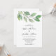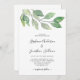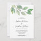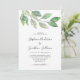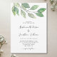 This rustic wedding invitation is decorated with watercolor greenery and stylish script typography.