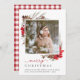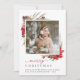 Share holiday greetings with these rustic chic Christmas photo cards featuring your favourite square photo surrounded by a thin white border with painted watercolor branches, boughs, red flowers and pine cones peeking out at the corners. "Merry Christmas" appears beneath in an elegant mix of block and script lettering. Personalise with your custom holiday greeting, name(s) and the year along the bottom. Cards reverse to a rustic buffalo check plaid pattern in matching holiday red and white.