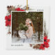 A beautiful rustic chic Christmas photo ornament featuring your favorite square photos (one on each side) surrounded by a thin white border with painted watercolor branches, boughs, red flowers and pine cones peeking out at the corners. Personalize with the year and your family name.