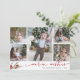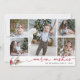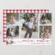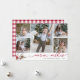 Share holiday greetings with these rustic chic Christmas photo cards featuring five favourite photos in a collage layout (4 square and one portrait/vertical). "Warm Wishes" appears along the bottom in hand lettered script typography, accented with pine cones, berries and red holiday flowers on a painted bough. Personalise with your name(s) and the year along the bottom. Cards reverse to a rustic buffalo check plaid pattern in matching holiday red and white.