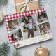 Share holiday greetings with these rustic chic Christmas photo cards featuring five favourite photos in a collage layout (4 square and one portrait/vertical). "Warm Wishes" appears along the bottom in gold foil hand lettered script typography, accented with pine cones, berries and red holiday flowers on a painted bough. Personalise with your name(s) and the year along the bottom. Cards reverse to a rustic buffalo check plaid pattern.