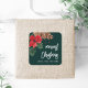 Finish your holiday gifts and mailings with these rustic chic Christmas stickers featuring watercolor leaves, red flowers, pine cones, and holly berries on a rich forest green background. Personalise with a custom holiday greeting and your name beneath.
