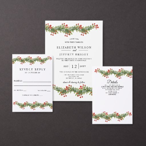 Rustic Boughs of Holly Winter Christmas Wedding rsvp cards.