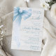 Rustic Bow Something Blue Bridal Shower Invitation. Celebrate the bride-to-be with this charming "Something Blue Before I Do" bridal shower invitation, featuring a delicate watercolor blue bow against a rustic white wood background. The phrase "Something Blue Before I Do" beautifully sets the tone for this special occasion. Perfect for a rustic or shabby chic wedding shower, this invitation clearly displays all the essential details including the honoree's name, date, time, location, and RSVP information. It also includes a section for registry details, making it a convenient all-in-one announcement. Add a touch of soft elegance to your pre-wedding festivities with this lovely design.