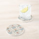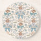 Boho and rustic coaster featuring hand drawn illustration of bows and flowers in blue.
