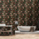 This rustic wall paper features brick background with red rose vine accents. The perfect accent to your home decor.