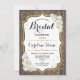 Rustic Wood Bridal Shower. Elegant design with faux glitter gold and dark brown wood pattern. Features white roses and script font. Perfect for a stylish country style bridal shower. Customise with your own details.
