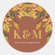 Rustic Brown Autumn Foliage Fall Wedding Monogram Classic Round Sticker