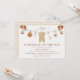 Rustic fall baby shower invitation featuring a clothes line with baby clothes, pumpkin and autumn foliage. This a little pumpkin is on the way baby shower invitation also features a decorative calligraphy font.