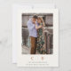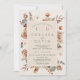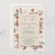 Floral, foliage wedding invitation in natural tone of browns and beige on an antique white background and beige frame. This rustic floral wedding invitation is deal for a couple looking for rustic floral wedding invitation in warm tones with a hint of gray green. The couples photo appears on the back.