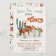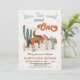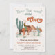 Cute retro how the west was one first birthday invitation for baby boy featuring a cowboy, western desert landscape with cacti and some retro style text. This western themed first birthday invitation for boy is ideal for a wild west themed first birthday party.