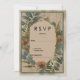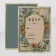 Rustic brown wood with green, dark orange, and gold hand-drawn beautiful foliage, woodland floral Wedding RSVP invitations. This stylish modern abstract invitation is perfect for any classy and chic girl. This design is ideal for a trendy party event. Customise this design with your message and personalised information. All designs are printed