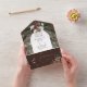ALSO AVAILABLE WITH A QR CODE TO SCAN. This design features a rustic green pine and pinecone bouquet on a soft cocoa brown background with white flowers. It is accented with a white sparkle overlay to illustrate the magic of the beautiful winter holidays. Perfect for a Christmas or winter wedding. Personalised All-In-One invitations are a unique combination of both a beautifully printed custom invitation with an easy to tear off perforated RSVP postcard. And they are so easy to use! You simply fold, then seal the back flap with the three included clear stickers, and mail. And when your guests receive your custom invite, they just tear the perforated RSVP Card off and drop it back in the mail to you!