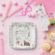 Sweet gender neutral woodland animals themed baby shower paper plates featuring various woodland animals, butterflies, bow and wreath.