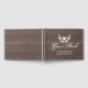 Rustic brown wood country chic deer antler wedding Guest Book. Part of rustic hunter / hunting theme set. Let your guests write a word. Cute logo design with vintage faded heart love icon. Perfect for summer outdoor garden marriages in July or August. Personalise with name of bride and groom plus date of getting married. Stylish distressed script typography. Beautiful artwork for trendy wedding party.