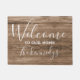 Farmhouse door mats to welcome guests in style. The rustic brown wood background adds a country chic look . Personalize with family name.
