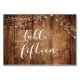 This rustic, elegant wedding and event invitation suite of designs presents some popular wedding design trends combined in a fresh way. With a rich brown wood background and dual strings of twinkling light accents, I've combined a beautiful modern script font to render graphics depicting key words and phrases in the design set. In this table card, the "fancy type" reads "table fifteen". This collection is ideal for a country or casual post-wedding reception or celebration event. All layers are unlocked to allow you as much control as you desire. // 19 // ***** Please note that because the centre text graphic is quite large, you will want to check the margins with your holder and make sure the letters will not be covered by any part of your holder's design. The graphic can be resized if you need it to be smaller. Just click to customise the card, then choose the top layer to reduce its dimensions as you see fit! *****