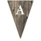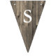 This rustic style bunting is made up of a brown faux wood design. As shown, the bunting says "congratulations." However, if you would like to change the text, there is a template you can use to easily change the letters.