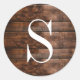 Rustic Brown Wood Texture Monogram Classic Round Sticker