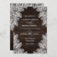 This vintage and elegant wedding invitation is perfect for a classy event. It features hand-drawn white lace on top of a rustic brown wood background. It's southern, pretty, sweet, modern, and unique; the perfect design to impress your guests.