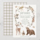 Sweet gender neutral woodland animals themed baby shower invitation featuring various woodland animals, butterflies, bow and wreath.