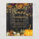 Beautiful rusty orange and dark burgundy autumn fall flowers and pumpkin borders with strings of golden twinkle lights over a dark brown barn wood background making a charming Thanksgiving Friendsgiving dinner budget affordable invitation with a trendy handwriting gold typography script. +++++++++ Easy to personalise with your details! Suitable for traditional rustic | country | farmhouse | outdoor backyard family and friends gatherings. ++++++++++ PLEASE READ THIS BEFORE PURCHASING! This is a budget affordable wedding card printed on a paper sheet (each sheet has one card). ++++ For the best rapport price-quality, our advice is to choose the Semi-Gloss paper type (it is thick enough to be used for stationery) ++++ If you need envelopes, choose the ENVELOPE OPTION. +++ Double-check all the information and spelling of your text because you will receive exactly what you see - no one else will check anything before printing. ++++ This card is designed for size 4.5" x 5.6". In the case you choose another size of the card and text goes outside page, everything needs to be fixed before adding the product to cart. Please ask Live Design Service for help.